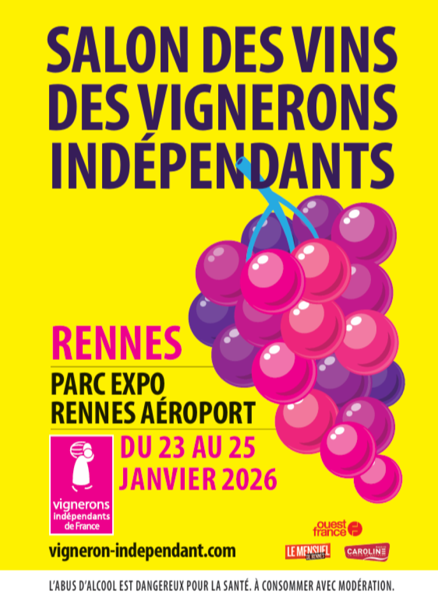 Le Salon des Vins des Vignerons Indépendants revient à Rennes : rendez-vous du vendredi 23 au dimanche 25 janvier 2026 au Parc Expo Rennes Aéroport. Près de 250 vignerons venus de toute la France attendent le public pour trois jours de dégustations et de rencontres en direct. Près de 20 000 visiteurs sont attendus pour cette 26 ème édition.
