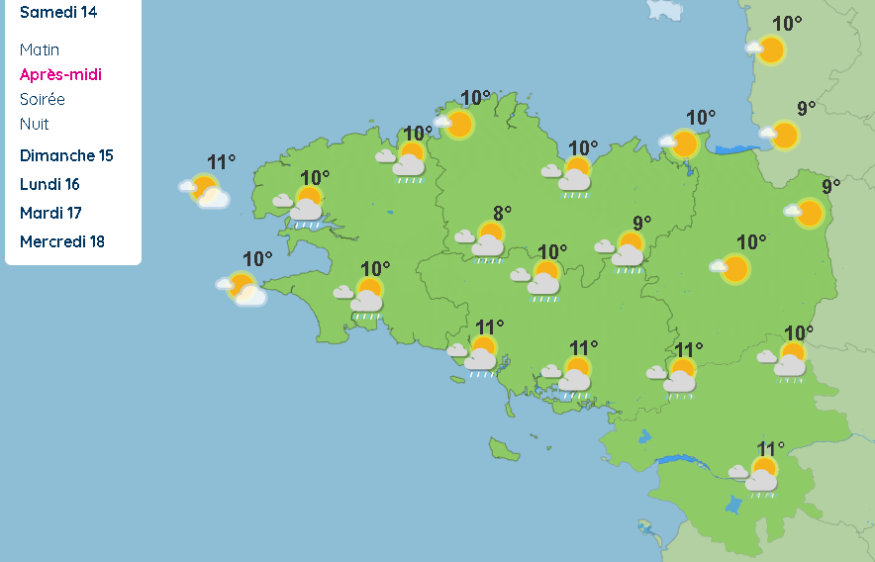 Vendredi 13 mars : du vent de la pluie et ds températures en baisse. Vigilance jaune pour vent fort dans le Finistère.