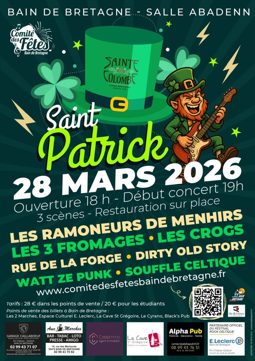 Les Ramoneurs de Menhirs, les Trois Fromages, les Crogs sont quelques-uns des artistes invités au Festival Saint-Patrick à Bain de Bretagne, commune située entre Rennes et Redon.